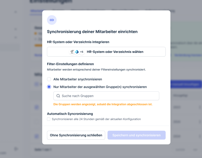 Yes. We support group-based filtering. We retrieve users from your connected HRIS or IDP to evaluate group membership, but only create, update, and sync accounts for users in the groups you select. Users outside those groups are ignored and not persisted. Unified.to does not store or cache your employee data, it is directly transmitted to IS-FOX. For more information: Unified.to — Unified APIs for HR, ATS, CRM & Authentication