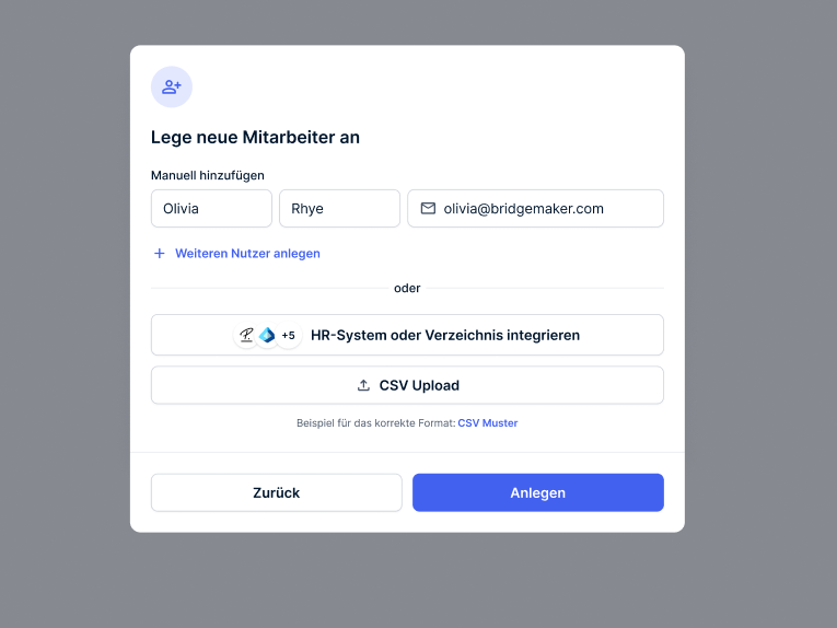 We match on a primary key (email or user ID). During the first sync, we match the users from HRIS to the existing employees in your IS-FOX account using the email address. After the initial matching, follow-up syncs use the User ID from your HRIS/IDP.