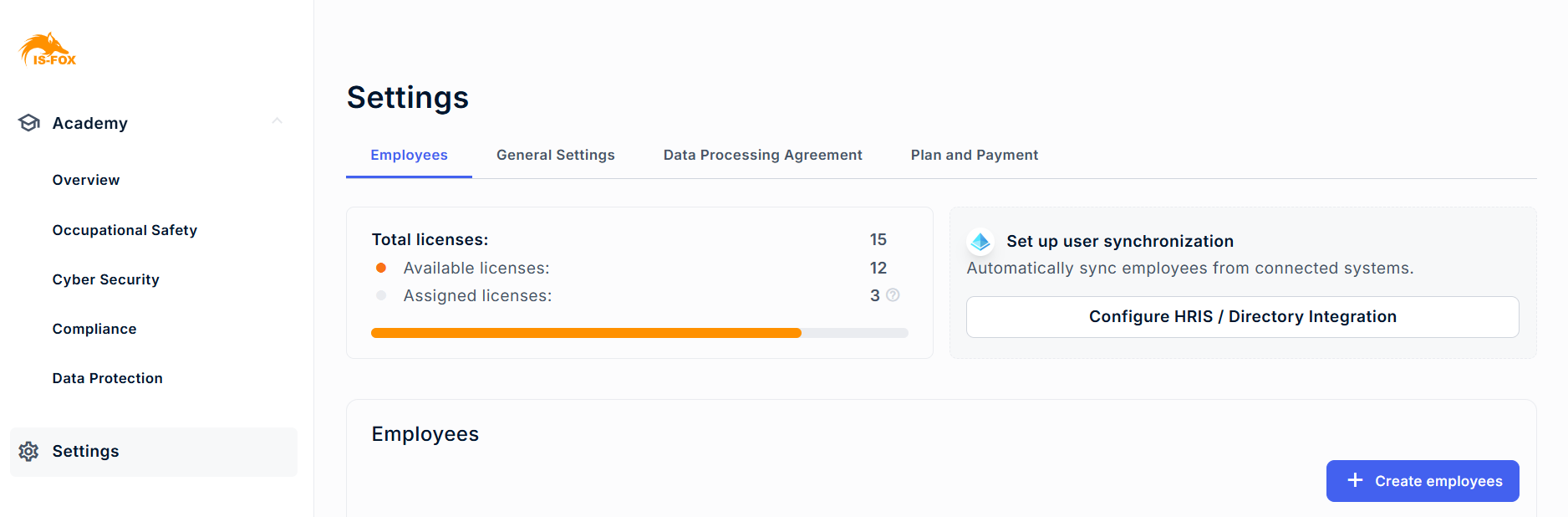 - Provision your employees by integrating IS-FOX with your Human Resources Management System (HRIS) or your Identity Provider (IDP).