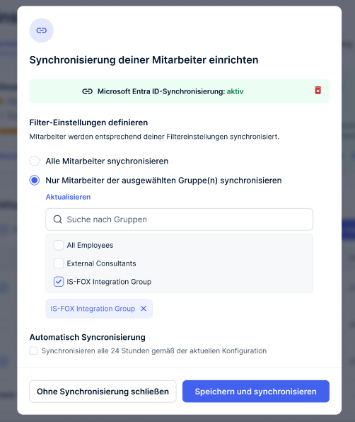 If you're interested in syncing groups or enabling group-based training assignments, feel free to reach out to us at support@is-fox.de — we’d love to hear from you!